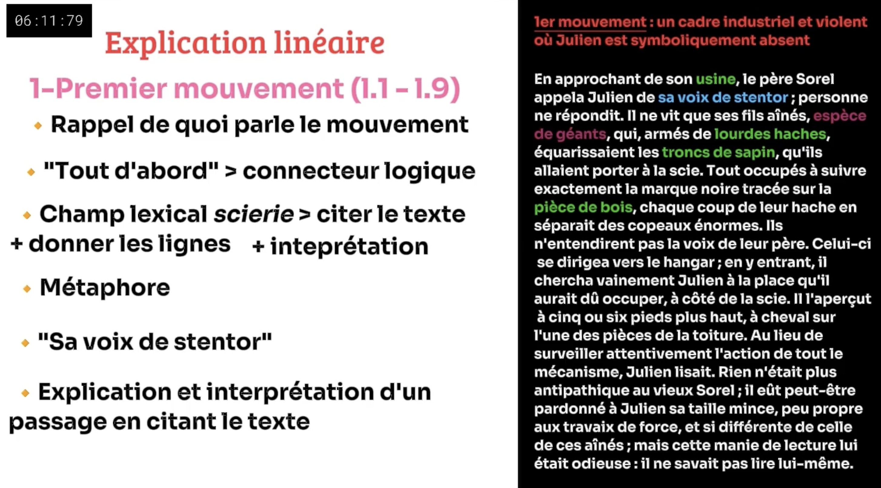 Expliquer comment faire, c'est bien. Montrer comment faire, c'est ce qui provoque le déclic. L'explication linéaire est souvent l'exercice le plus redouté de l'épreuve. C'est pourquoi, dans la seconde moitié de la vidéo, je réalise moi-même une explication linéaire sur un extrait du roman Le Rouge et le Noir de Stendhal.