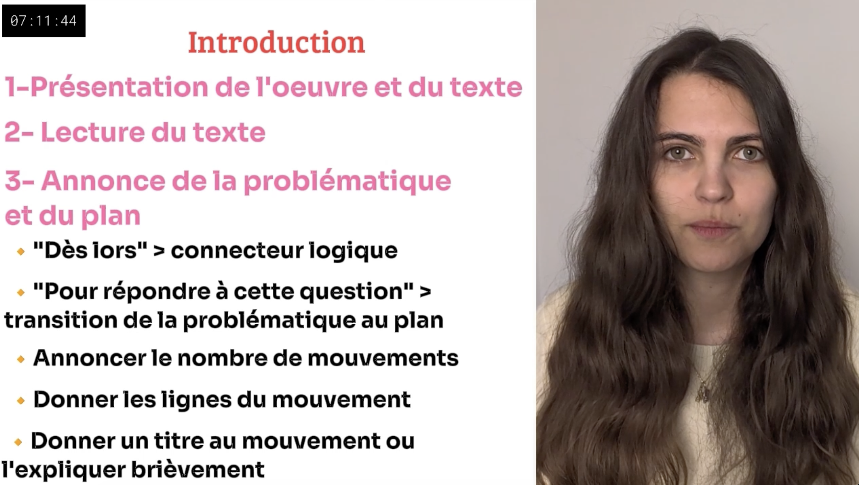 La démonstration pratique (la deuxième partie de la vidéo) se concentre uniquement sur l'explication linéaire. C'est le cœur de l'examen, là où les élèves ont le plus besoin d'un modèle visuel. En revanche, la première partie de la vidéo aborde bien l'épreuve dans sa globalité.